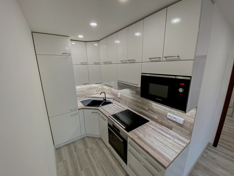 - Кухонна лінія від нашого столяра, включаючи вбудовану техніку.